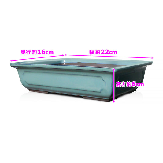 盆栽鉢 長角反鉢 四日市萬古焼 (5号(約16センチ), 織部釉 (緑))