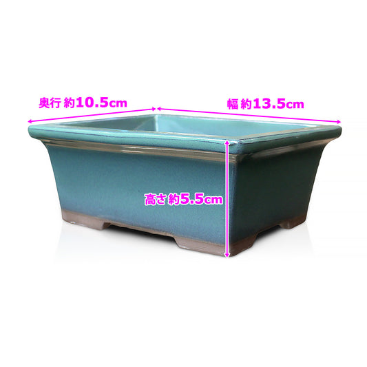 盆栽鉢 長角反鉢 四日市萬古焼 (4号(約13.5センチ), 織部釉 (緑))