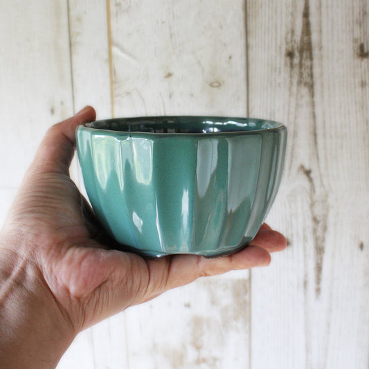 盆栽鉢 菊型小鉢 青色 海鼠釉 瀬戸焼 (4号(約12センチ))