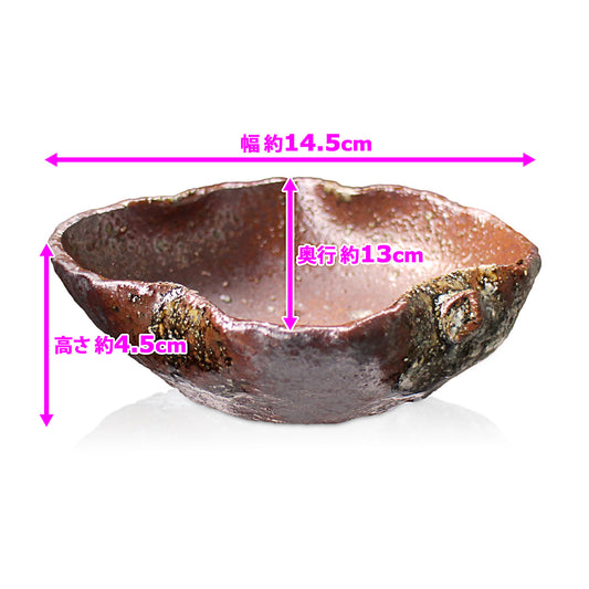 信楽焼 盆栽鉢 葉型 4.5号 茶窯変 約14.5センチ