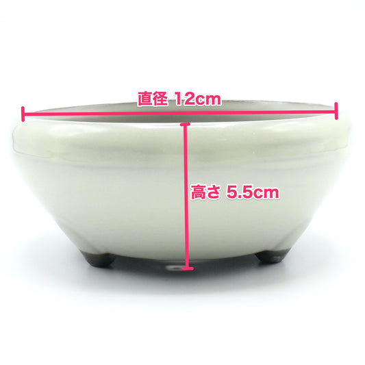 盆栽鉢 鉄鉢 クリーム釉(白) 瀬戸焼 (4号(約12センチ))