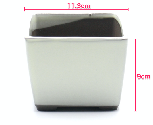 盆栽鉢 山野草鉢 正角 瀬戸焼 (4号(約11.3センチ), クリーム釉(白))