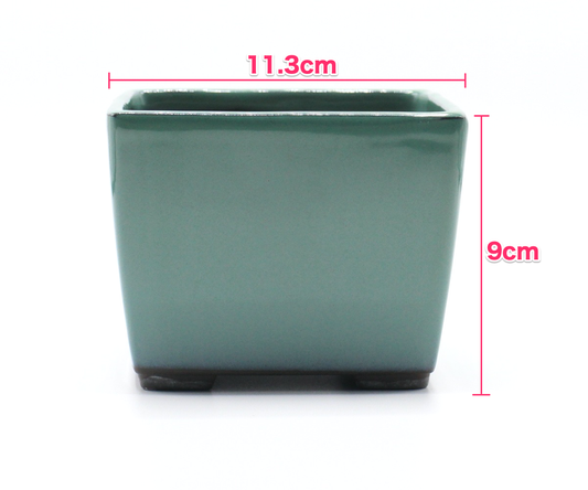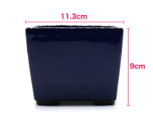 盆栽鉢 山野草鉢 正角 瀬戸焼 (4号(約11.3センチ), 海鼠釉(青))