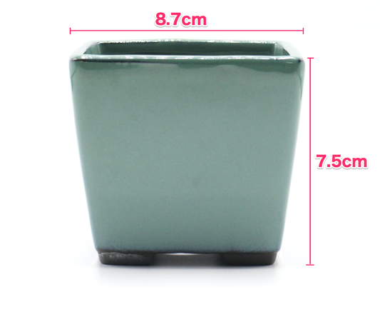 盆栽鉢 山野草鉢 正角 瀬戸焼 (3号(約8.7センチ), 海鼠釉(青))