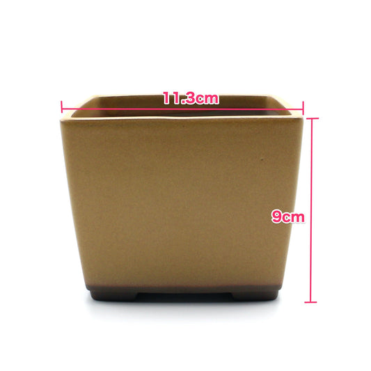 盆栽鉢 山野草鉢 正角 瀬戸焼 (4号(約11.3センチ), 黄釉(黄土色))