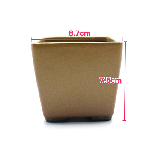 盆栽鉢 山野草鉢 正角 瀬戸焼 (3号(約8.7センチ), 黄釉(黄土色))