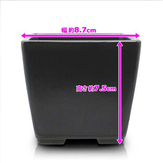 盆栽鉢 山野草鉢 正角 黒色 黒マット釉 瀬戸焼 (3号(約8.7センチ))