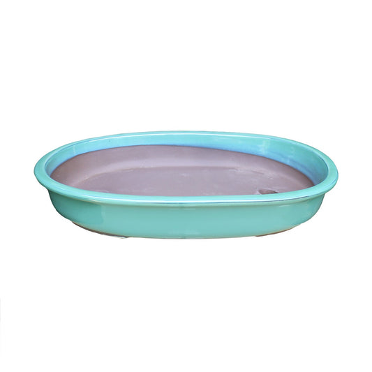 盆栽鉢 小判エン付鉢 瀬戸焼 (10号(約30センチ), 均窯釉(水色))