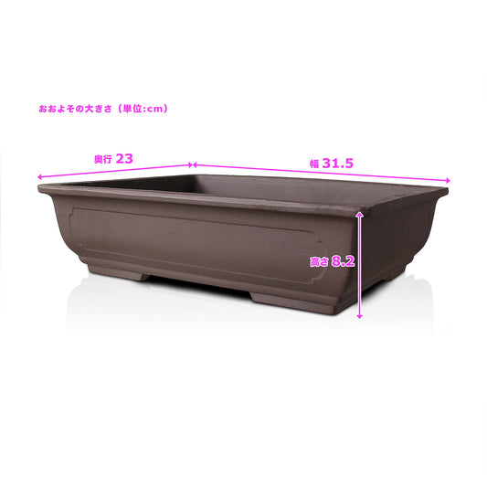 盆栽鉢 長角マド入 ウ泥 松柏用 四日市萬古焼 (10号(約31.5センチ))