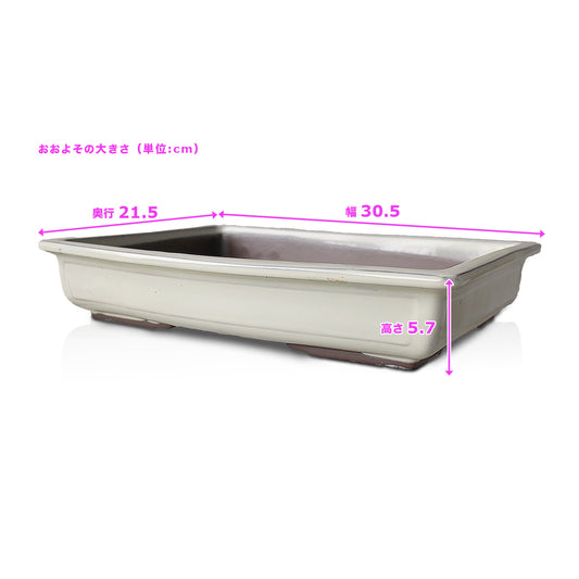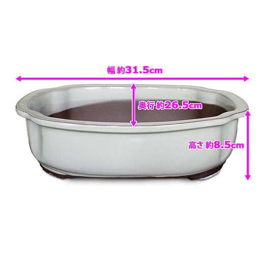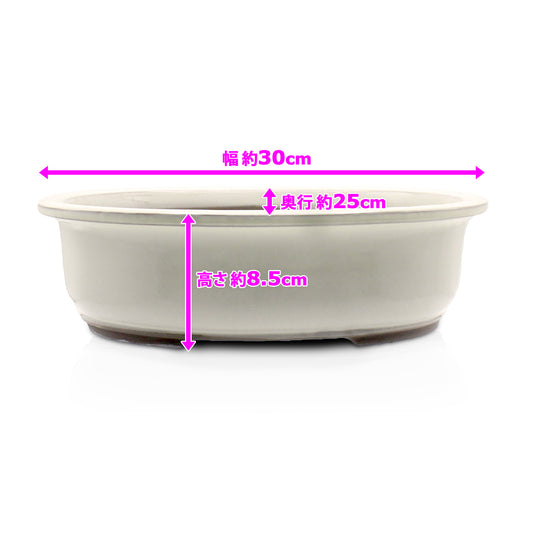 盆栽鉢 10号 オカメ小判 白色 クリーム釉 瀬戸焼 陶器 浅め 山野草 雑木 松柏 大型 中型 約31センチ