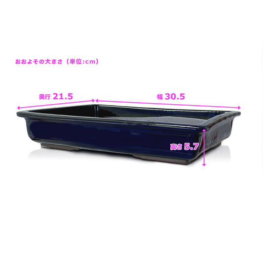 盆栽鉢 長角マド入 青色 海鼠釉 瀬戸焼 (10号(約30.5センチ))