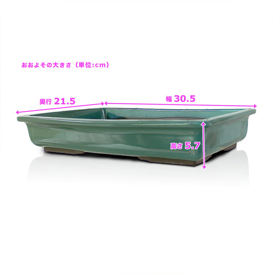 盆栽鉢 10号 オカメ小判 緑色 織部釉 瀬戸焼 陶器 浅め 山野草 雑木 松柏 大型 中型 約31センチ