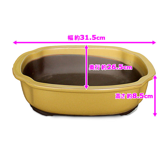 盆栽鉢 木瓜鉢 モッコ鉢 瀬戸焼 (10号(約31.5センチ), 黄釉)