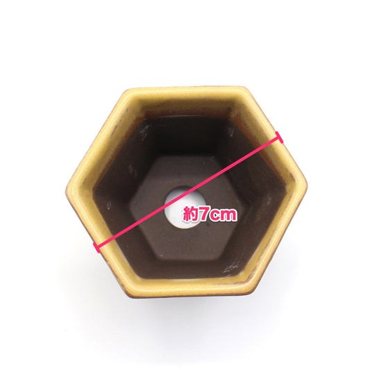 ミニ盆栽鉢 山野草鉢 六角反鉢 懸崖 小鉢 瀬戸焼 (2.5号(約7センチ), 黄釉)