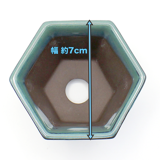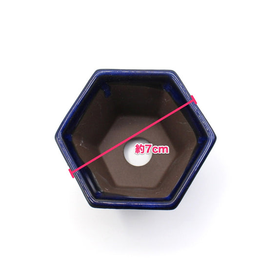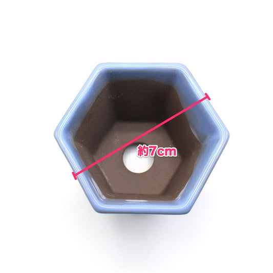 ミニ盆栽鉢 山野草鉢 六角反鉢 懸崖 小鉢 瀬戸焼 (2.5号(約7センチ), 海鼠釉(青))