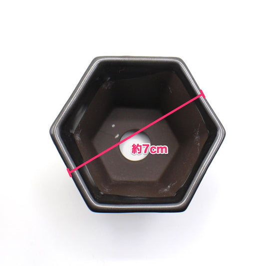 ミニ盆栽鉢 山野草鉢 六角反鉢 懸崖 小鉢 瀬戸焼 (2.5号(約7センチ), 黒)