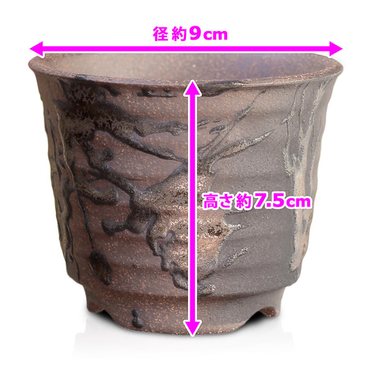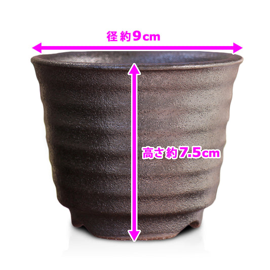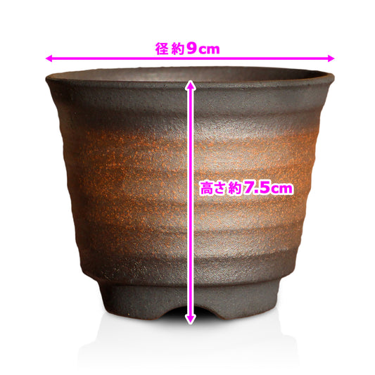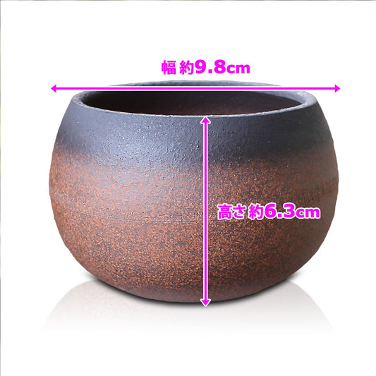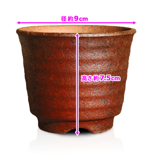 盆栽鉢 六平 赤吹 3号 四日市萬古焼 丸 円形 陶器 約9センチ