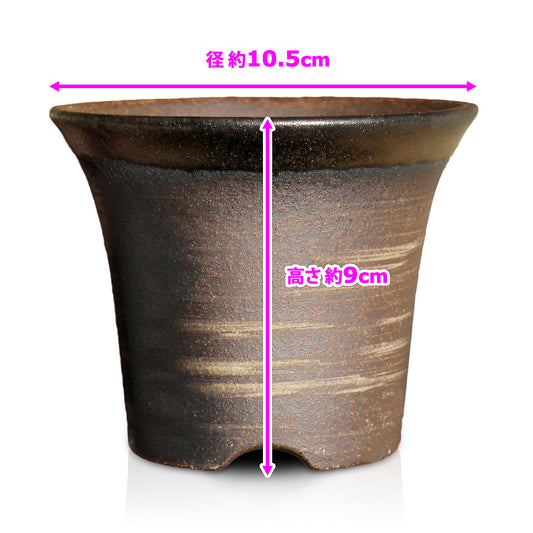 盆栽鉢 ラッパ型 金吹 3.5号 四日市萬古焼 丸 円形 陶器 約10.5センチ