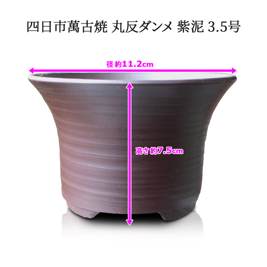 盆栽鉢 丸反ダンメ 紫泥 四日市萬古焼 陶山窯 山野草 観葉植物 アガベ 塊根 (3.5号(約11.2センチ))