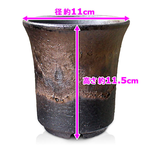 盆栽鉢 ラッパ型 黒吹 3.5号 四日市萬古焼 丸 円形 陶器 約10.5センチ