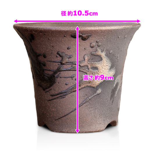 盆栽鉢 ラッパ型 赤吹 3.5号 四日市萬古焼 丸 円形 陶器 約10.5センチ