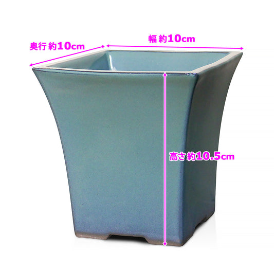 盆栽鉢 3号 角反懸崖 青色 海鼠釉 四日市萬古焼 約10センチ