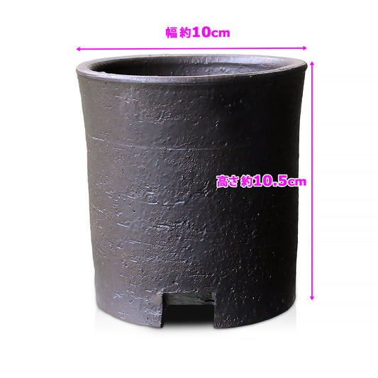 信楽焼 盆栽鉢 寸胴 3.5号 黒マット 約10センチ
