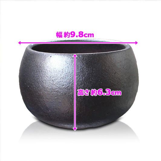 盆栽鉢 六平 黒吹 3号 四日市萬古焼 丸 円形 陶器 約9センチ
