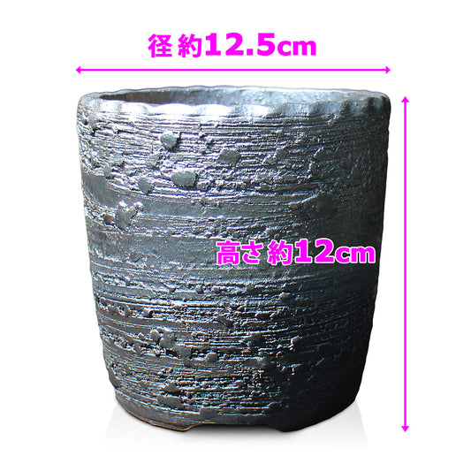 盆栽鉢 4号 切立 黒窯変 グレー 信楽焼 約12.5センチ