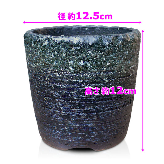 盆栽鉢 4号 切立 青窯変 グレー 黒 信楽焼 燻し 約12.5センチ