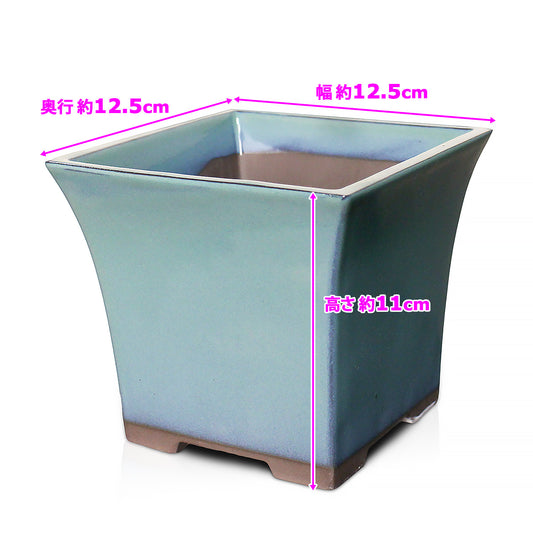 盆栽鉢 ナデ角 青色 海鼠釉 四日市萬古焼 (4.5号)