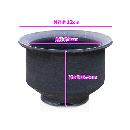 盆栽鉢 エビネ鉢 黒吹 4号 四日市萬古焼 丸 円形 陶器 約12センチ