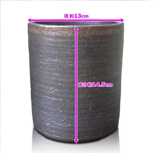 丸型切立鉢 鉄イラボ 信楽焼 盆栽鉢 山野草 観葉植物 アガベ 塊根 (4号(約13センチ))