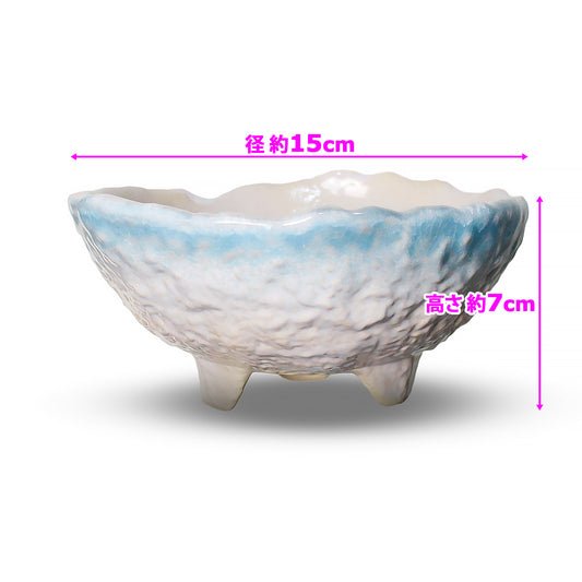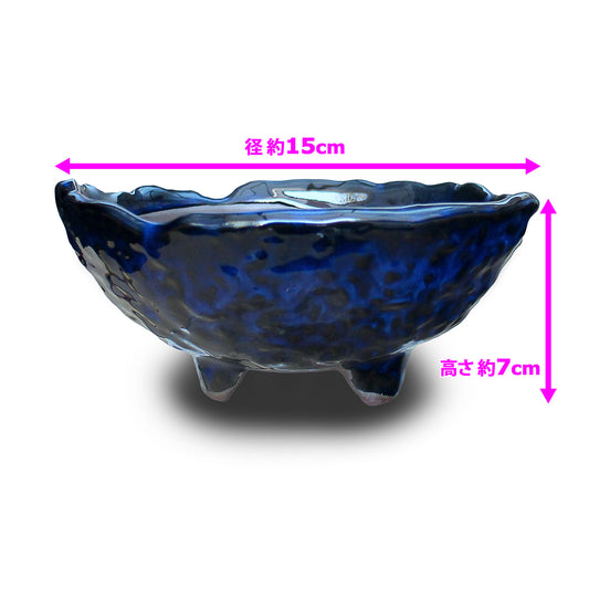 盆栽鉢 山野草鉢 岩肌丸 四日市萬古焼 (5号(約15センチ), 海鼠釉(青))