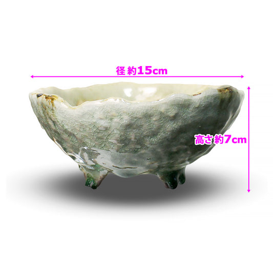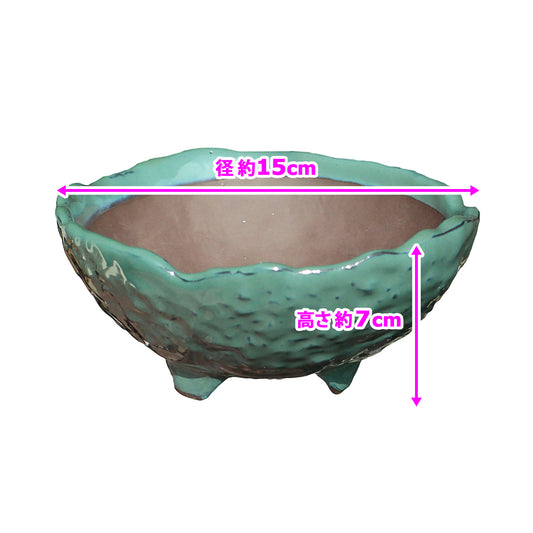 盆栽鉢 山野草鉢 岩肌丸 四日市萬古焼 (5号(約15センチ), 織部釉(緑))