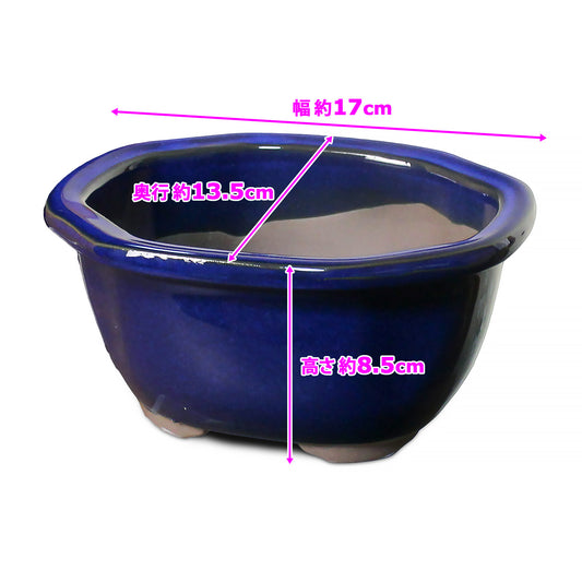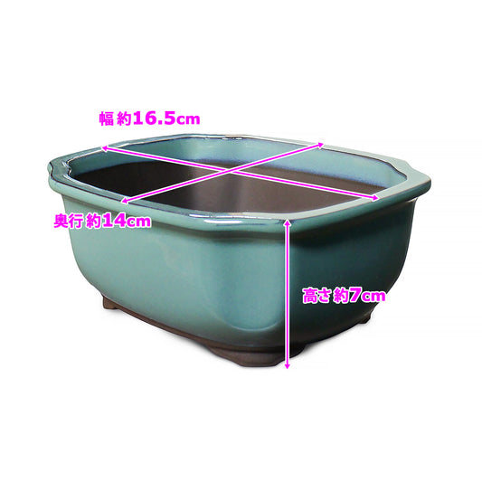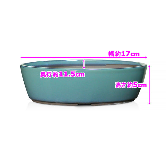 盆栽鉢 小判切立盛 四日市萬古焼 (5.5号(約17センチ), 海鼠釉(青))