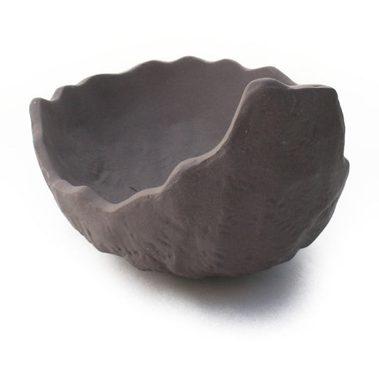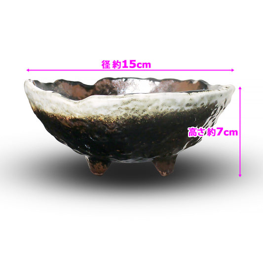 盆栽鉢 山野草鉢 岩肌丸 四日市萬古焼 (5号(約15センチ), 黒結晶)