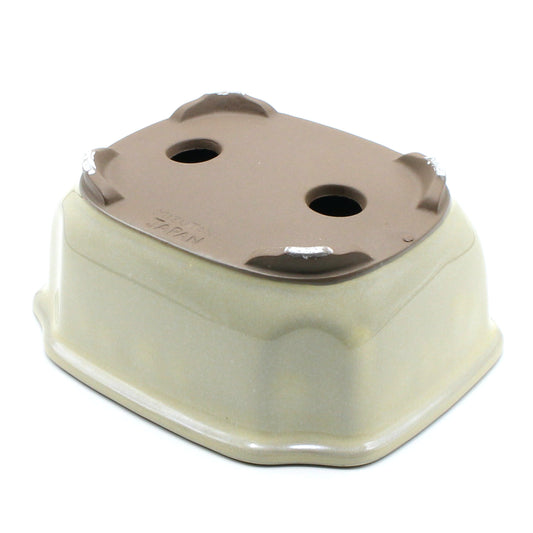 盆栽鉢 小判切立盛 四日市萬古焼 (5.5号(約17センチ), クリーム釉(白))