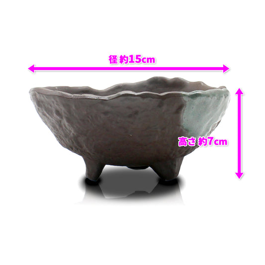 盆栽鉢 山野草鉢 岩肌丸 四日市萬古焼 (5号(約15センチ), ウ泥織部流し)