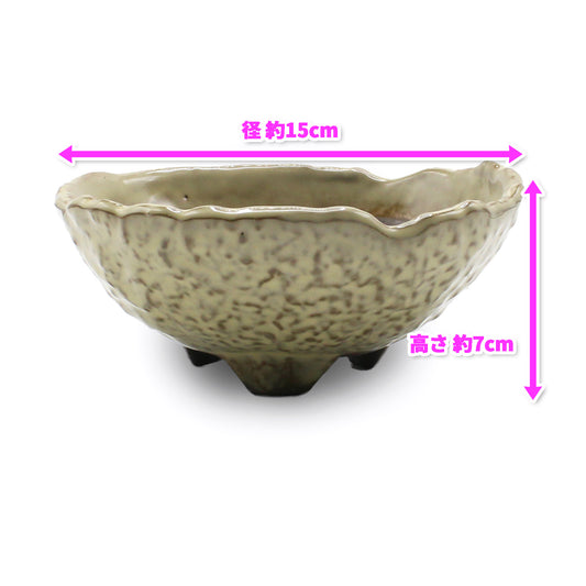 盆栽鉢 山野草鉢 岩肌丸 四日市萬古焼 (5号(約15センチ), クリーム釉(白))