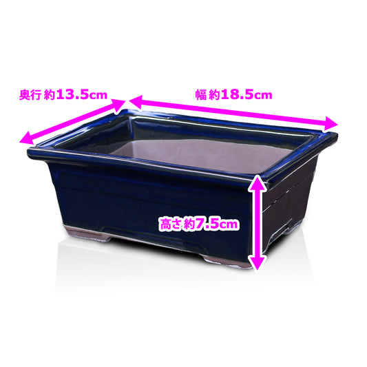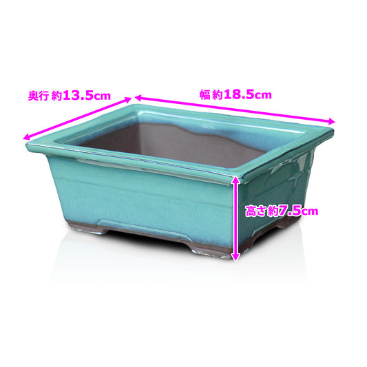 盆栽鉢 長角下帯 青色 海鼠釉 瀬戸焼 (6号)