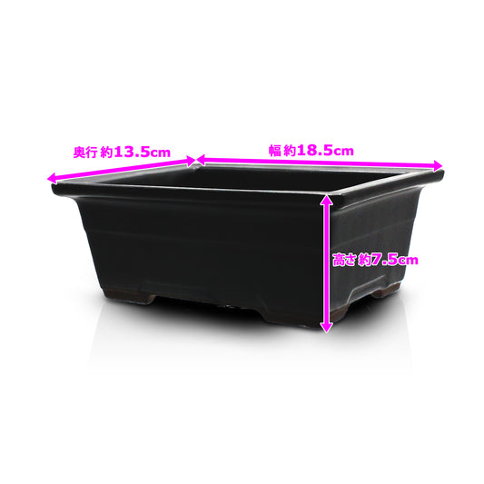 盆栽鉢 長角下帯 黒色 黒マット釉 瀬戸焼 (6号(約18.5センチ))