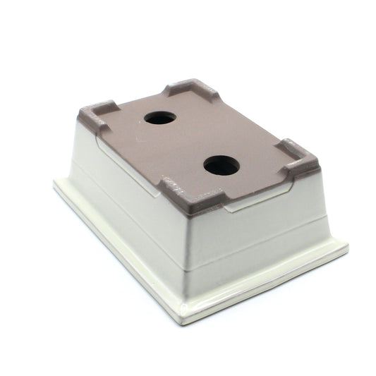 盆栽鉢 長角下帯 白色 クリーム釉 瀬戸焼 (6号(約18.5センチ))