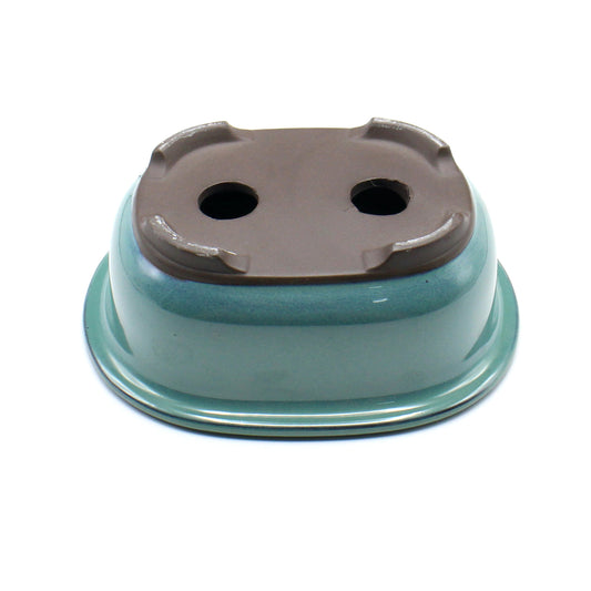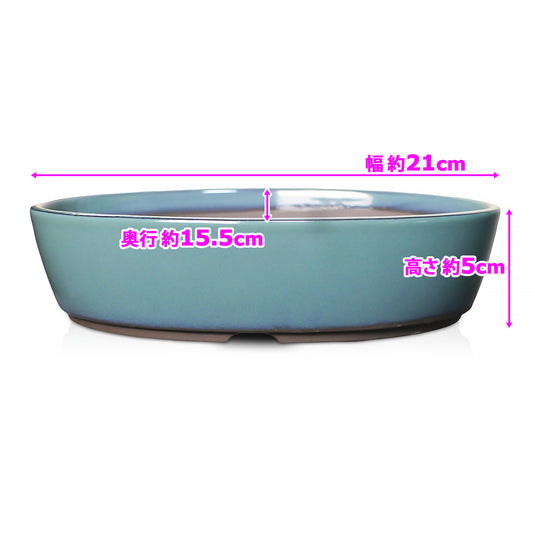 盆栽鉢 小判エン付鉢 瀬戸焼 (7号(約20.5センチ), 均窯釉(水色))