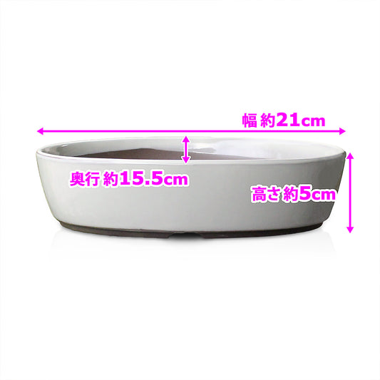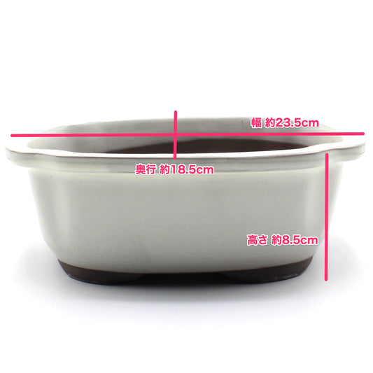 盆栽鉢 小判切立盛 四日市萬古焼 (7号(約21センチ), クリーム釉(白))