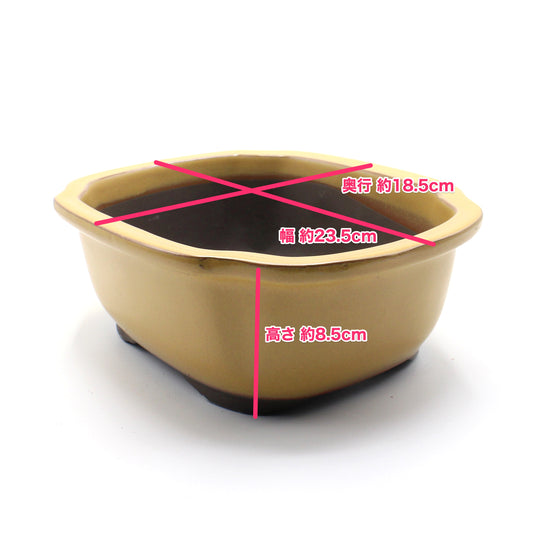 盆栽鉢 ナデ角中帯深 黄色(黄土色) 黄釉 瀬戸焼 (7号(約22センチ))