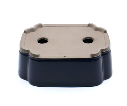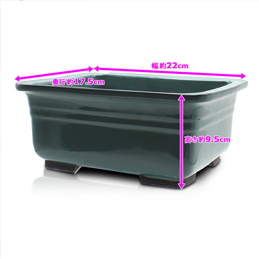 盆栽鉢 ナデ角中帯深 青色 海鼠釉 瀬戸焼 (7号(約22センチ))