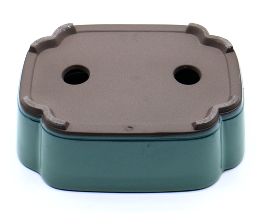 盆栽鉢 ナデ角中帯深 緑色 織部釉 瀬戸焼 (7号(約22センチ))