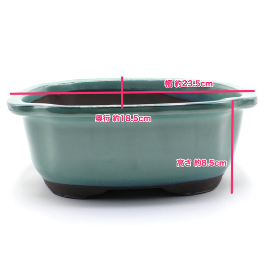盆栽鉢 ナデ角中帯深 水色 均窯釉 瀬戸焼 (7号(約22センチ))