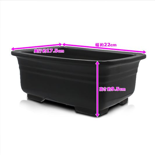 盆栽鉢 ナデ角中帯深 黒色 黒マット釉 瀬戸焼 (7号(約22センチ))